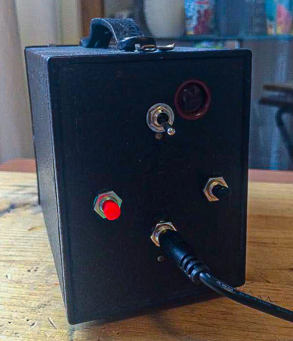 It also has a built-in alarm function that can be set using the buttons on the back of the camera. When the alarm is triggered, the front hallogen bulb flashes in the same sequence giving a unique feature to this amazing project!