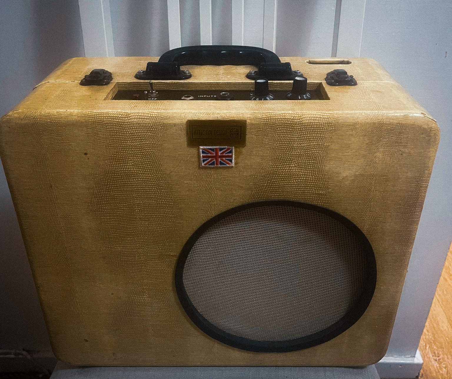 The amplifier features components that were carefully chosen to deliver the best possible sound quality. The output are powered by two matched EL84 tubes and the preamp section feature a ECC81 at first stage and a 12AX7 second stage, which deliver warm and rich tones along a mid lovely overdrive. The amp comes with a tone and volume control. A stand-by switch is provided which that silences your guitar amp without actually turning it off, which comes in handy when break time rolls around at rehearsal or at a gig.
